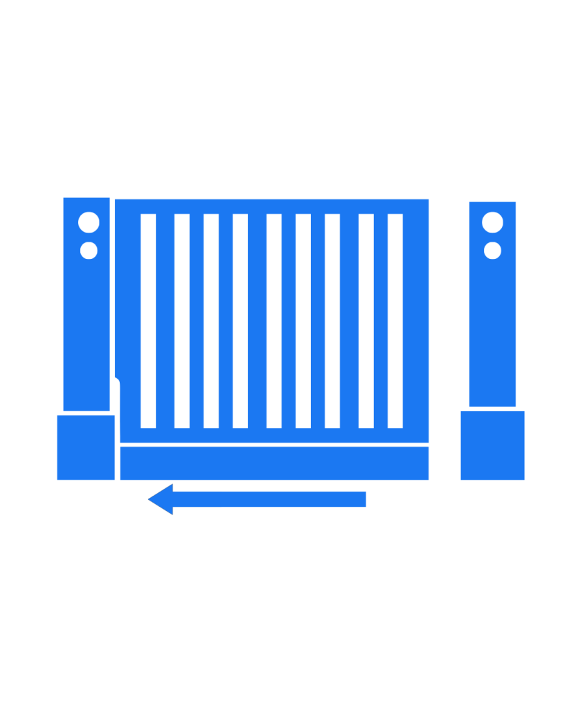 Ideales para desplazamiento lateral. Se automatizan con motores de cremallera o cadena según dimensiones y carga.