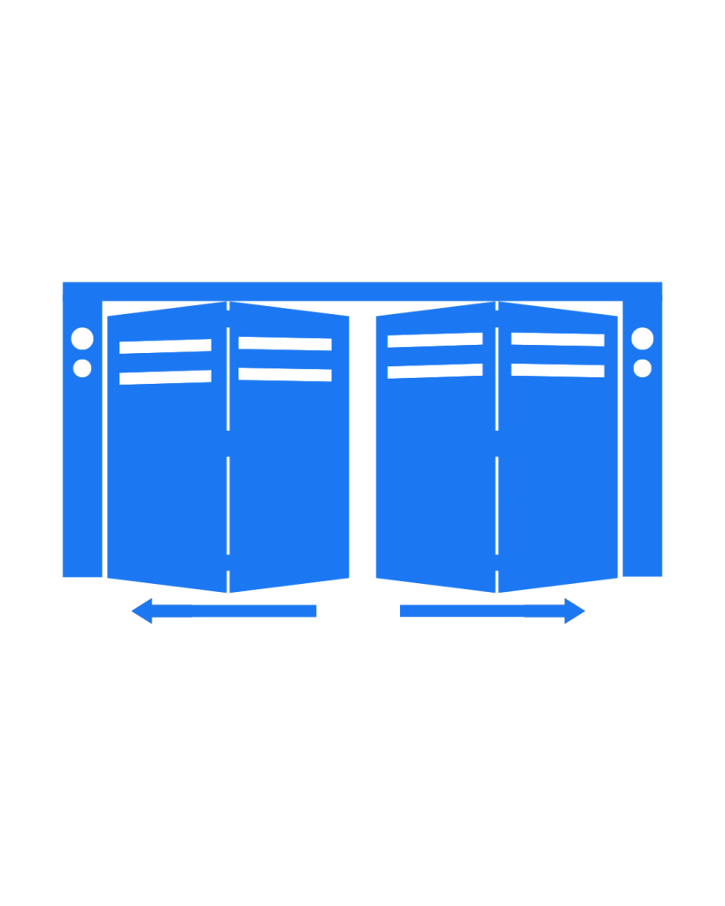 Solución eficiente cuando se requiere optimizar espacio frontal, con automatización mediante pistones o motores de cadena.